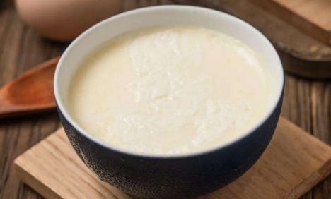 第四步:將混合好蛋清的牛奶再倒回原來的有奶皮的碗里,讓奶皮浮起來即可